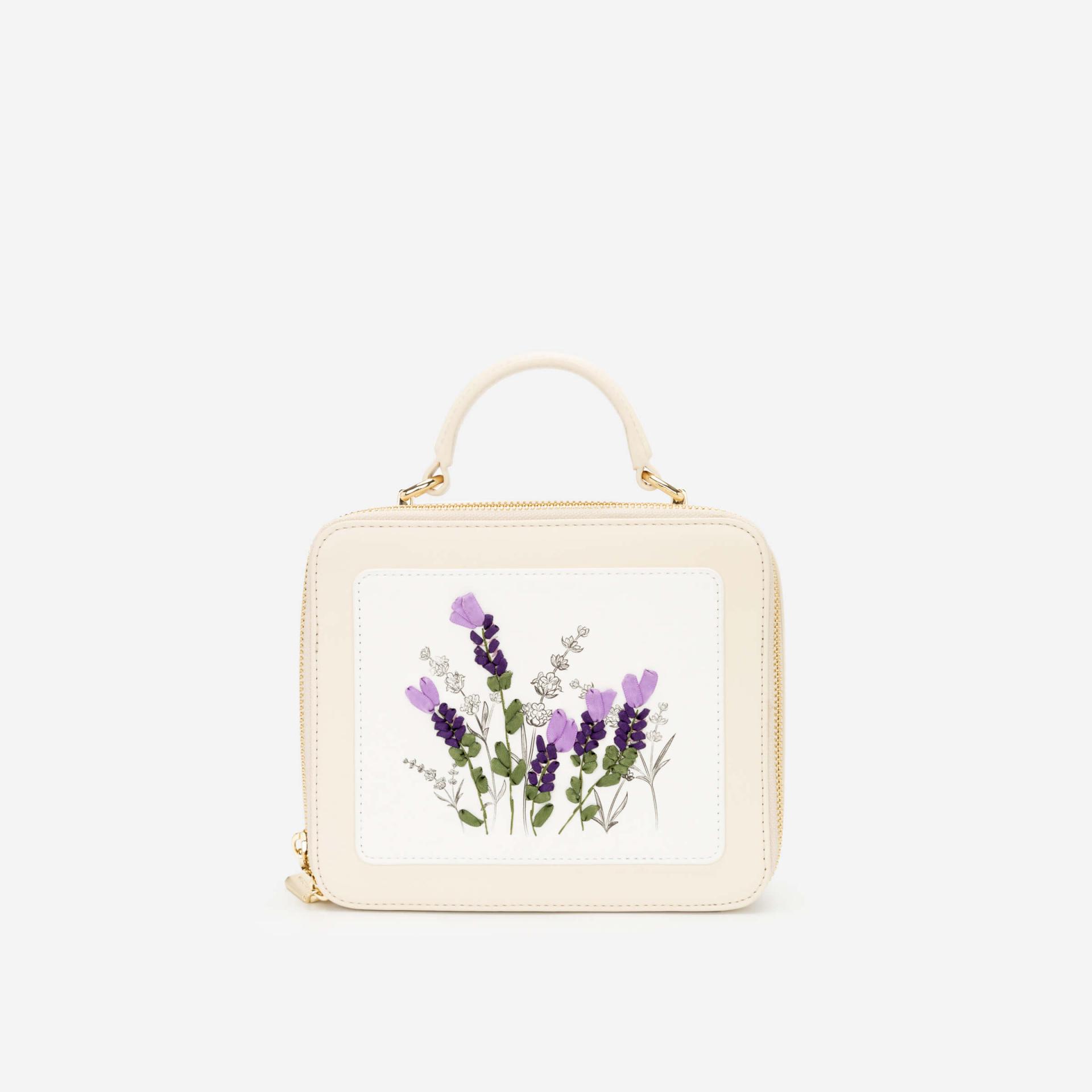Túi Hộp Thêu Hoa Lavender - SAT 0259 - Màu Kem